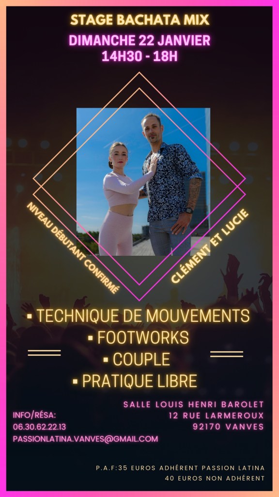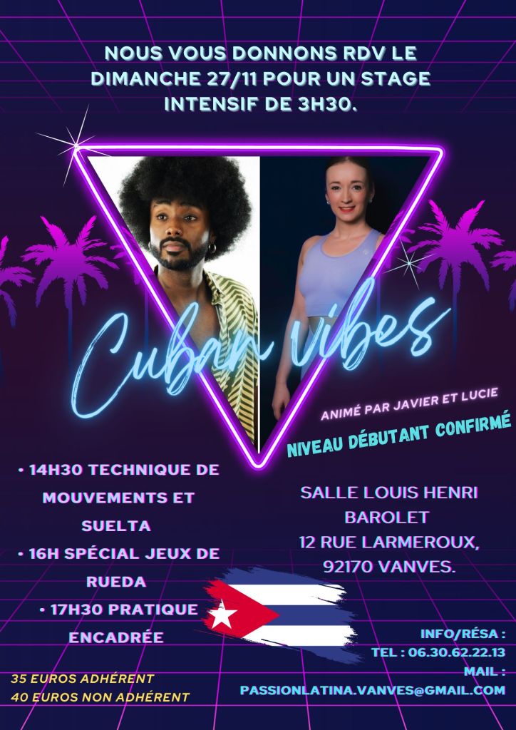 Réservation au 06.30.62.22.13 ou passionlatina.vanves@gmail.com